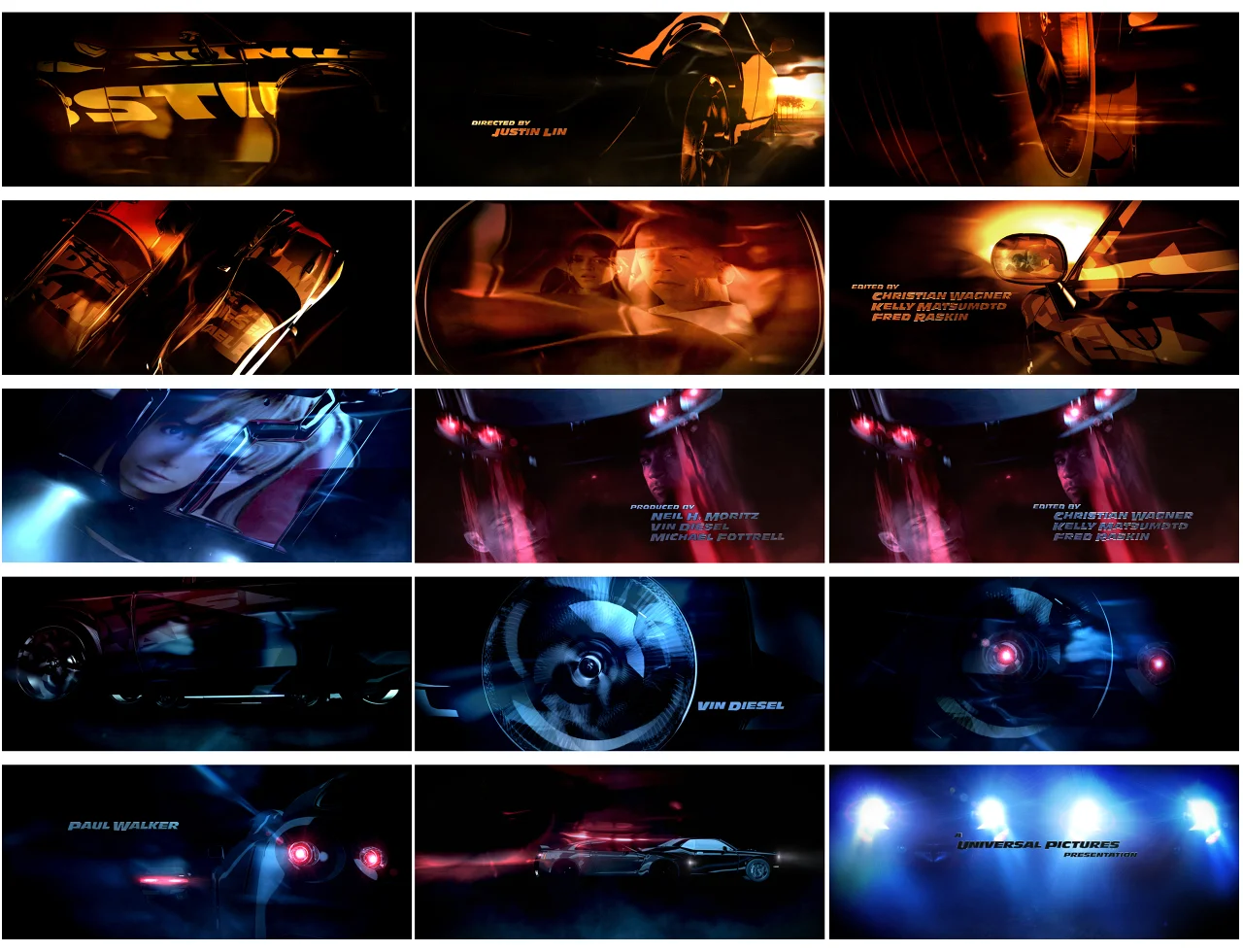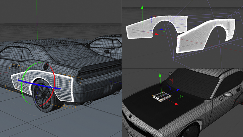 End title sequence for Justin Lin's American action film, Fast Five. The concept, a full CG car race that would revisit the environments of each of the five films, including Mexico, Tokyo, Miami and Los Angeles. Collaborated with senior designer Iris Azadi to create a moody, high-contrast storyboard that would ultimately end up to be the inspiration of the entire end title sequence. The first step was to produce high res renders of various angles of our hero cars, implemented the body modifications to our CG car models to better represent the actual Challenger SRT-8 used in the film. Some of the body modifications shown below.