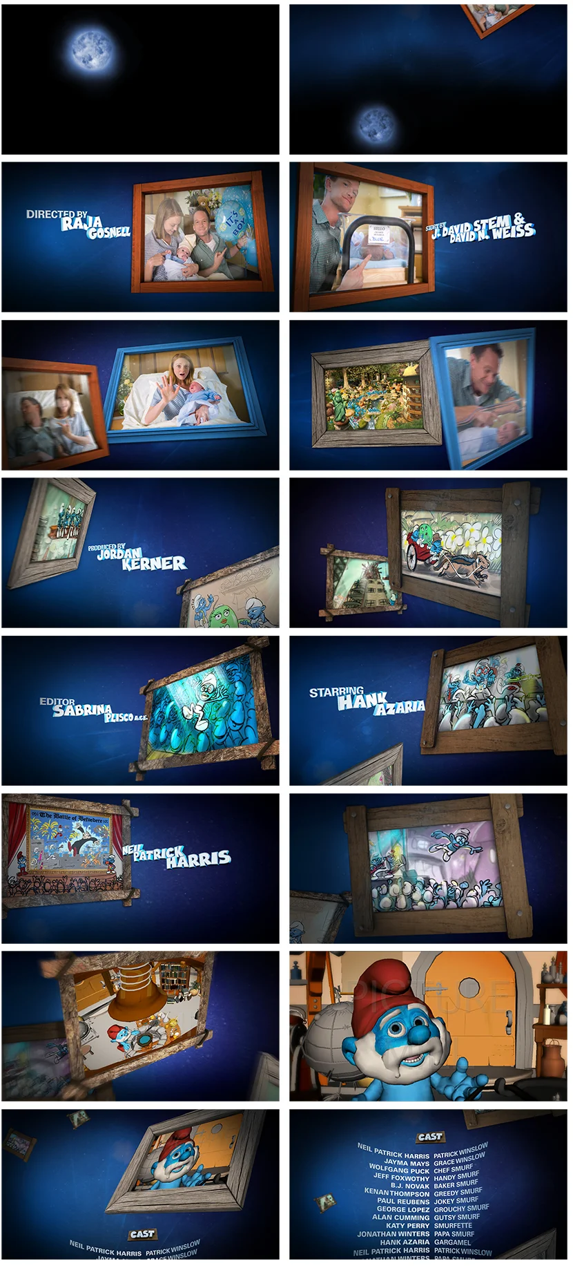 Modeled the Smurf's main title logo, created timing/speed of animation. Final texturing, fluids, particle effects were created by Jon Block. Created picture frames and typography in Cinema 4D and collaborated with designer Iris Azadi to create this storyboard.